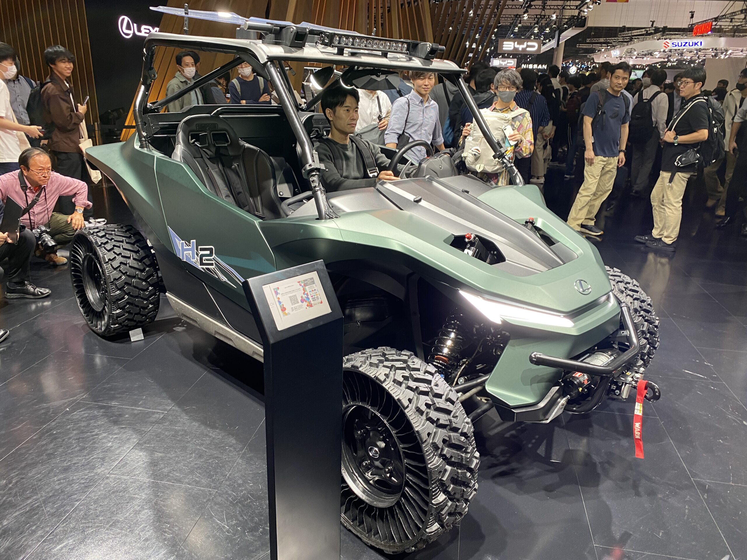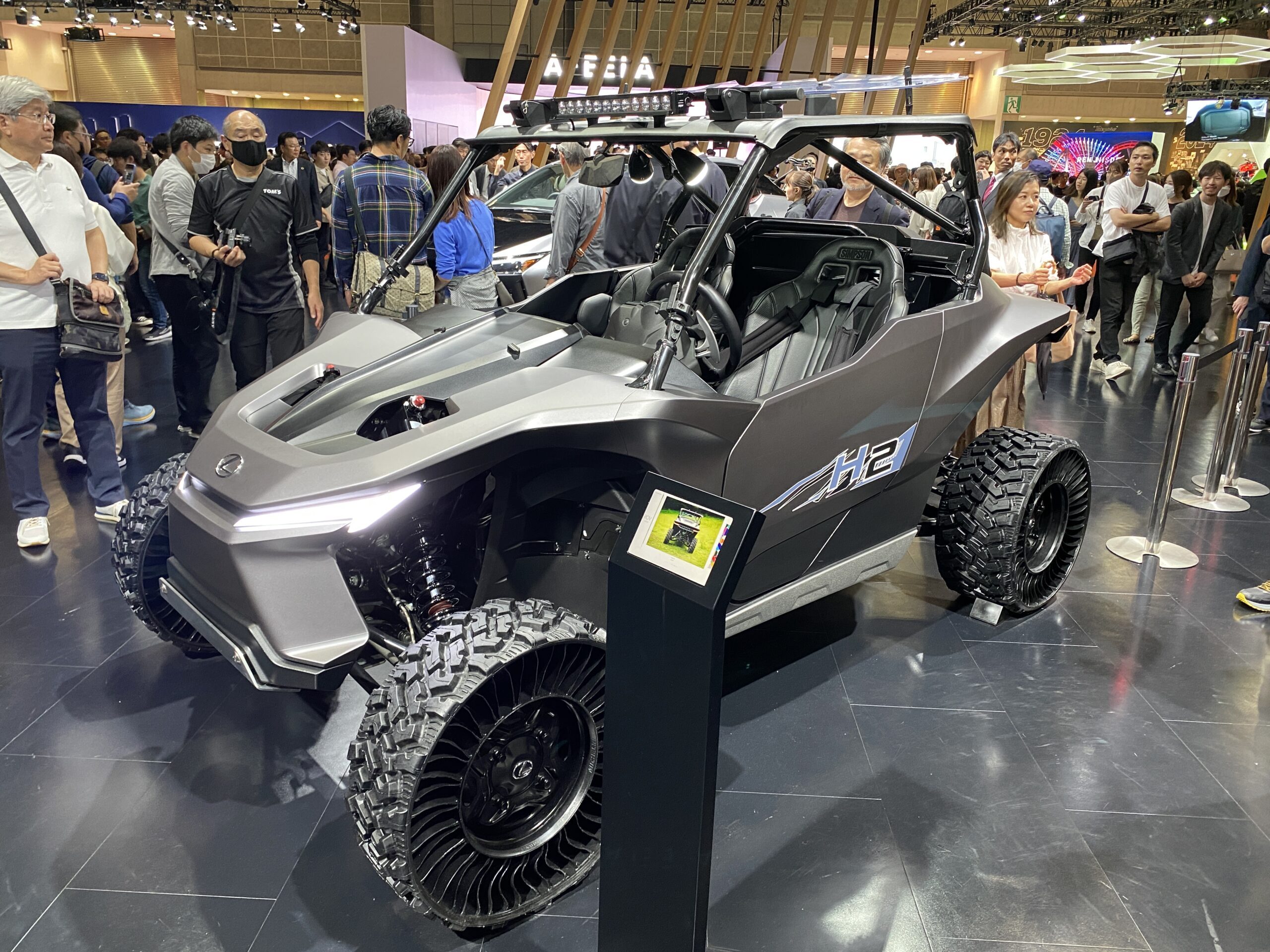 JMS2023 還有一個亮點是太空科技,Toyota/Lexus、Honda、Bridgestone、Yamaha 等品牌,展出 off-road 和月面探測相關的氫能源概念車,我想是因為外太空如果無法加油和充電,外星大氣成分如果有氫氣,就可以當作燃料使用。